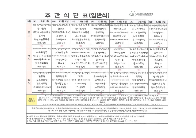 주간 식단표 입니다. (25.12.01 ~ 25.12.07) 페이지 정보 작성자 프라미스요양병원 댓글 0건 조회 1,065회 작성일 25-04-14 12:25 목록 본문 주간 식단표 입니다. (25.12.01 ~ 25.12.07) 다음글면회 안내드립니다. 25.04.14 댓글 0 댓글목록 등록된 댓글이 없습니다.